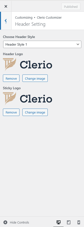 Customise → Clerio Customizer → Header Settings