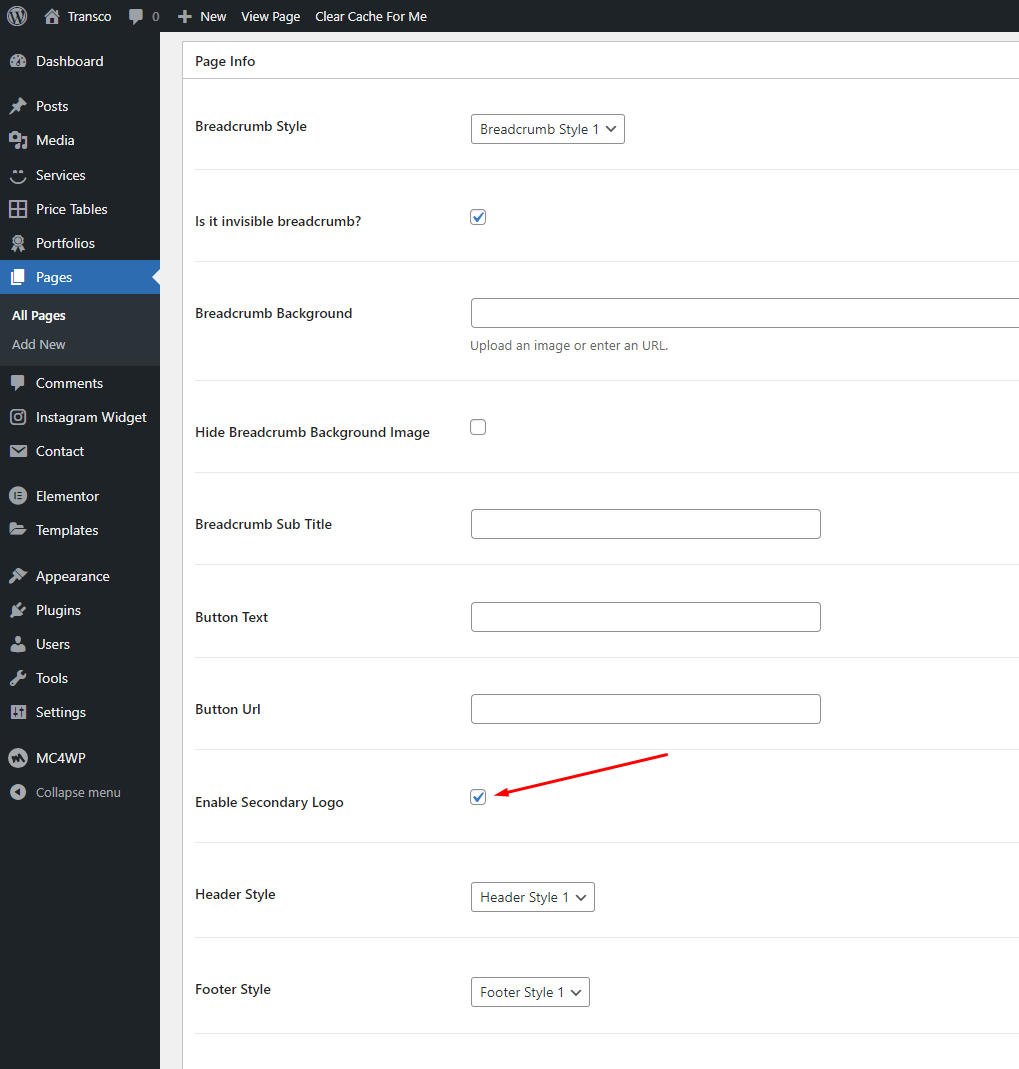 Overlay logos are used when the homepage post slider or page header is set to Large. It’s basically inverted version of a logo, that will look good on an image background. Page edit > scroll down > Enable Secondary Logo > Header Style 2