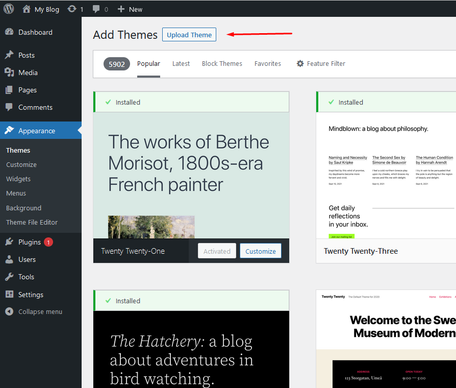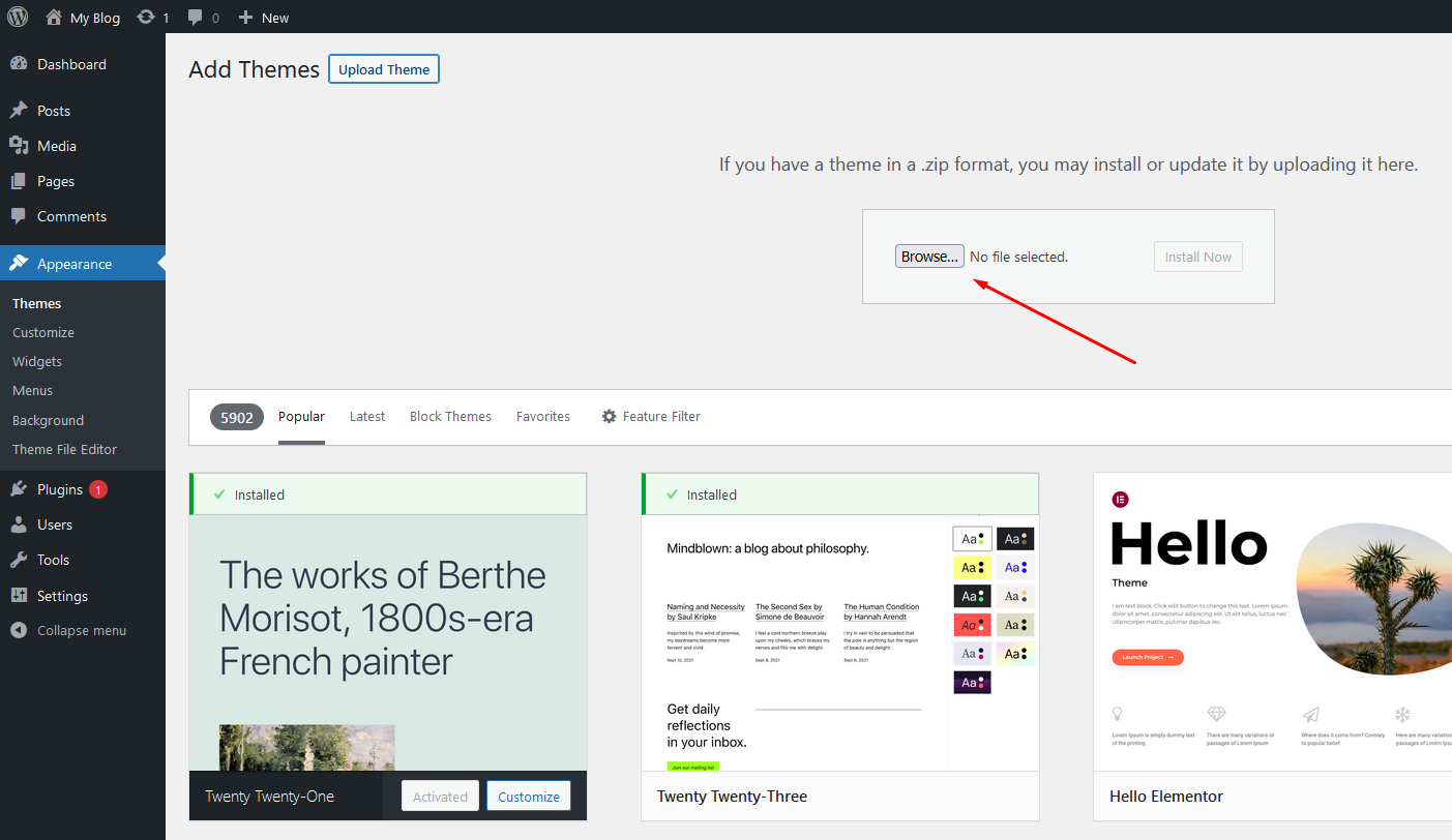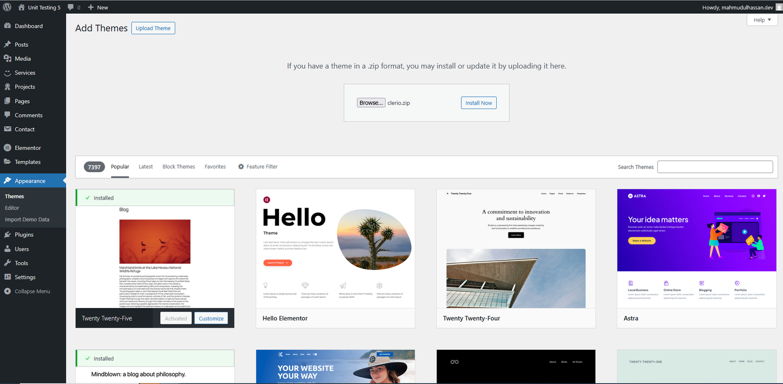 Note: When uploading your theme with the installer, please ensure you are uploading the theme .zip file, not the entire package you downloaded. In this case, you will be uploading Clerio.zip.